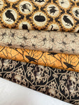 Happy Halloween,  this sophisticated Halloween collection is in rich earth tones of grey, dusty orange and black, these fabrics will work well with home décor projects as well as quilts. The designs include black crows, spiders, eyes, bats, black roses, suns and moons and owls.
