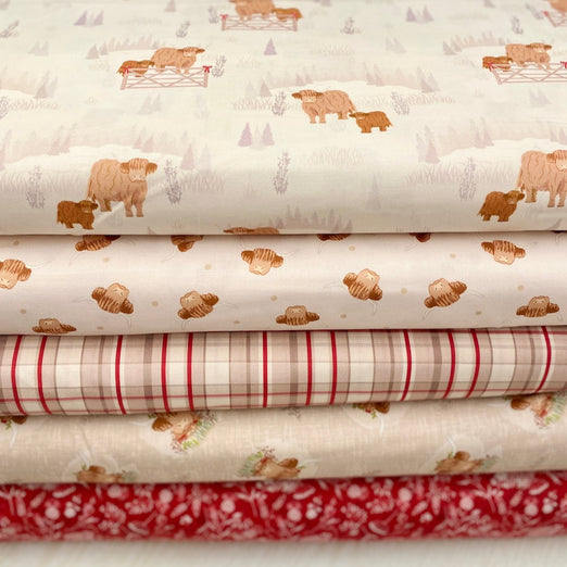 A collection of 5 designs, featuring Highland Cows and tartan check patterns, by The Craft Cotton Company. Perfect for seasonal projects, quilting and crafting.