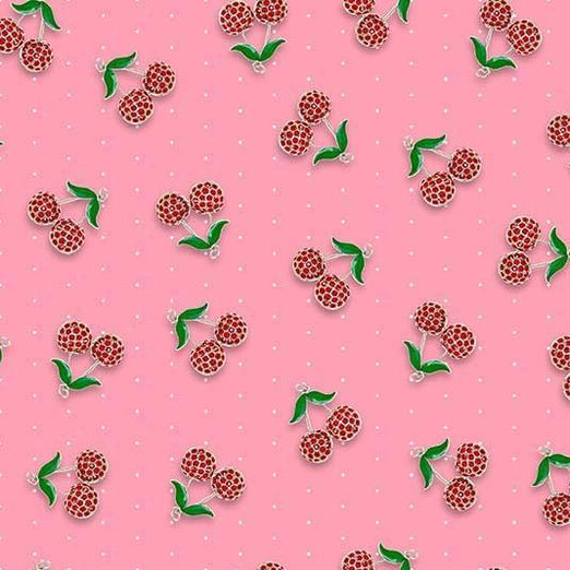 This fabulous design has cute red cherries and bright green leaves  on a pink background. The "I Heart Kitsch" collection is the epitome of Aimee Stewart's joy and delight over the quirky charm of all things Kitsch.  The vibrant colours, playful collectibles and zany aesthetic is a delightful way to embrace the fun side of life and spark happiness.