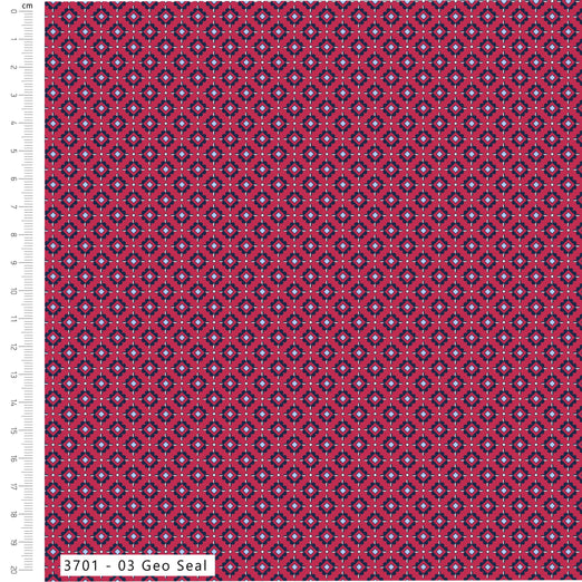 Printed cotton fabric by The Craft Cotton Company, featuring small geometric designs . A great design for background fabric, sashing, and quilt backing along with bag making and craft projects.