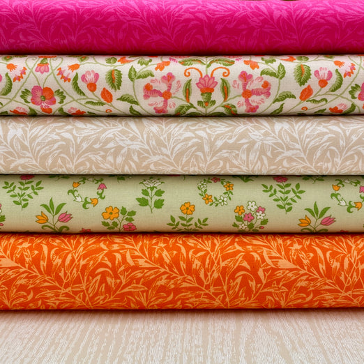 The collection is traditionally screen printed onto Lasenby cotton, a base specifically developed for quilting and craft projects.This fabric bundle has 2 Liberty fabrics and 3 Williw Bough from William Morris in the size that you choose.