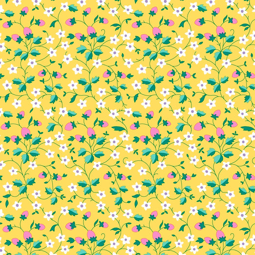 Inspired by a hand-painted gouache design from Liberty’s 1982 archive, Strawberry Picking features delicate blossoms that resemble sparkling stars gently scattered among winding vines of ripe strawberries. This charming pattern offers a whimsical and enduring appeal.