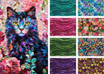 Gigi in the Garden is a beautiful stained glass collection featuring Gigi the Cat. These vibrant fabrics feature butterflies, florals and stripes in a stained glass appearance. Designed by Peggy Collins for Camelot Fabrics. There are 8 fabrics and a panel that measures 36"x44"in this pack.