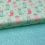 Saddle up with the sweetest little cowgirl quilting cotton fabric collection ever with Camelot Design Studio's very own 'Rodeo Rose'. Featuring a soft colour palette and all the trappings of trendy Western-inspired imagery like cactus, cowboy hats and boots, horseshoes and florals. this collection is perfect for baby blankets, sentimental quilts, room decor, layette and bibs, baby cowgirl booties, bunting and wedding favours.