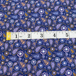 Printed cotton fabric by The Craft Cotton Company, featuring paisley designs in various sizes in an all over print on a purple background. A great design for background fabric, sashing, and quilt backing along with bag making and craft projects.