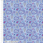 Delicate Blues, Paisley Hues Printed cotton fabric by The Craft Cotton Company, featuring  paisley designs in various sizes in an all over print on a purple background. A great design...