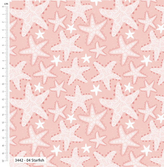 Tranquil Shores, Starfish Organic cotton prints by Make and Believe Fabrics, featuring bright and fun nautical sea and beach theme There are 10 designs in this collection. All fabric is...