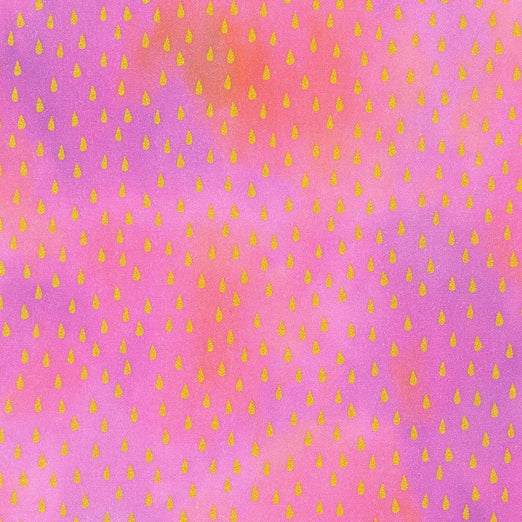 The prettiest pink shades in a marbled effect with gold metallic thread in an all over raindrop design. A stunning fabric collection for special sewing and quilting projects.