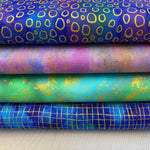 Chromaticity Blues Fabric Bundles The prettiest shades in marbled effects with gold metallic thread in all over designs. A stunning fabric collection for special sewing and quilting projects. 4...