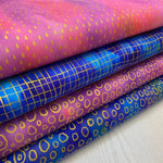 The prettiest shades in marbled effects with gold metallic thread in all over designs. A stunning fabric collection for special sewing and quilting projects.