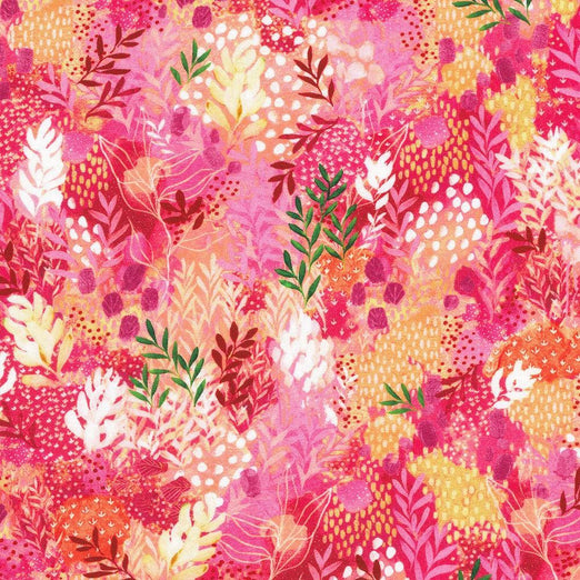 Raspberry, Painterly Trees A fabulous design of foliage, in vibrant pinks, white, yellow, and a splash of green. There are free quilt patterns available for you to download. 12'' repeat...