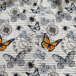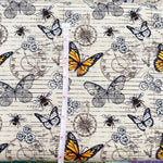 Vintage type design, Parchment coloured background with butterflies, bees, clocks, gears and compasses