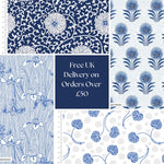 The V&A museum's archives serve as the inspiration for Crafts of Tranquility, featuring a stunning collection of motifs from ceramics, tapestries, stencils, and wallpaper. The intricate patterns, ranging from East Asian heritage to those by renowned architect and designer Owen Jones, are presented in a modern blue colour scheme.