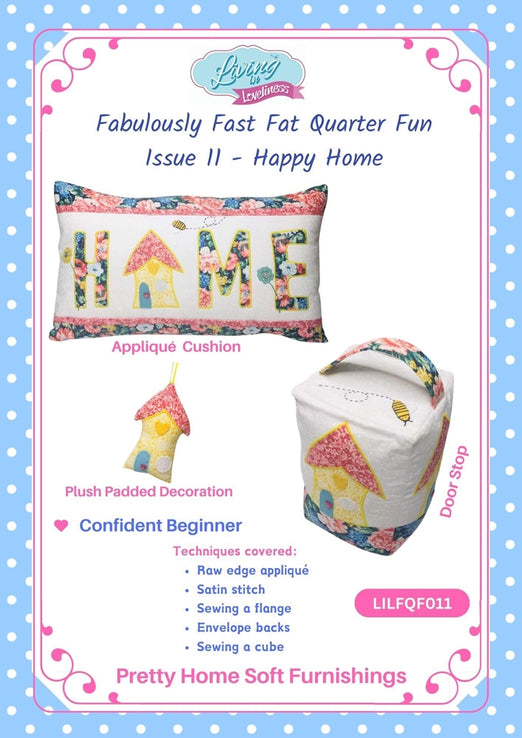 Happy Home Fabulously Fast Fat Quarter Fun by Living in Loveliness, Full instructions in a full colour paper pattern For Wadding Click Here