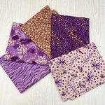 Printed cotton fabric by The Craft Cotton Co. Featuring animal print designs in shades of purple. Ideal for crafting, home decor and dress making.