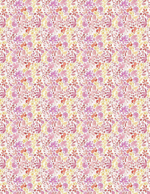 A Floral Ditsy pink print, A pretty design that goes perfectly with the Swirling Ribbons and Ditsy prints in the Winged Whisper range from Wilmington Fabrics.