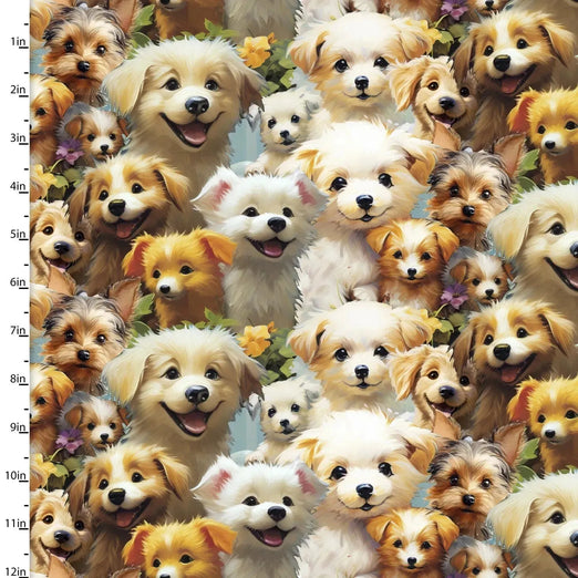 3 Wishes Fabric,Playful Pups, Fur-ever Friends, Cotton Fabric