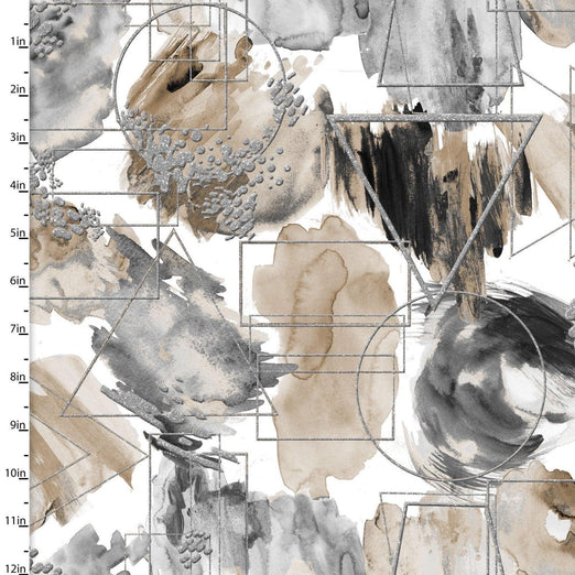 Painted Shapes This Painted Shapes, Metallic Fusion cotton fabric is a great way to add a touch of metallic to your next project. With a white background and taupe, gray,...