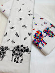 Colorforms brings your imagination to life with a spectrum of color and shades of gray. These fabrics feature elephants, butterflies, geometrics and marble swirls. Double border elephant print on white with pretty butterflies between the borders, great for skirts, dresses, quilts