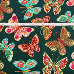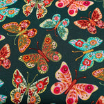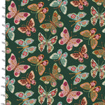 Caroline Alfreds' Folk Flora design will bring a beautiful, whimsical feel to any project. This premium cotton fabric features big and beautiful butterflies in pinks, browns, greens, and hints of turquoise in a unique, green background. Make something that stands out with this eye-catching print!