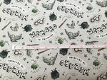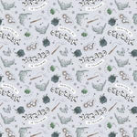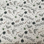 Calling all young witches and wizards! This cotton fabric is perfect for making quilts, clothes and other projects for your little one who is just starting out on their wizarding training. The fabric features a background of light grey with a repeating pattern of little wands, brooms and Hedwig, Harry Potter's owl. Make your child's bedroom feel like a part of the wizarding world with this fun cotton fabric.