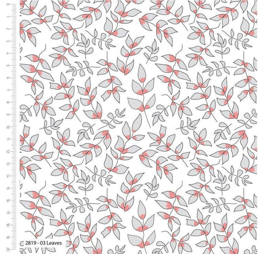 Introducing Leaves, form Petal and Pip Cotton Fabric! This beautiful cotton fabric features leaves on a white background, in grey and pink . It's perfect for quilting, sewing, and crafting projects. Designed by the crafty lass, this fabric is sure to add a touch of elegance to any project.