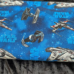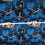 Add a touch of the Force to your next project with this Rebel ships blue fabric. This blue fabric features iconic star wars designs and is perfect for any fan of the series. It's made of 100% cotton and would make a great addition to any quilt, decor project or clothing piece. With its soft feel and colorful design, this fabric will be a hit with any star wars fan.